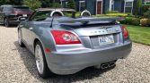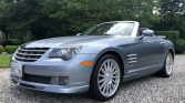 This 2005 Chrysler Crossfire SRT-6 convertible is powered by a supercharged 3.2-liter V6 paired with a five-speed automatic transmission and is finished in Sapphire Silver Blue Metallic over Dark Slate Gray. Equipment includes a power-operated soft top, a fixed rear spoiler, staggered-diameter wheels, heated power-adjustable seats, dual-zone climate control, and an Infinity CD stereo.