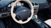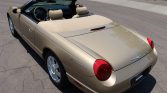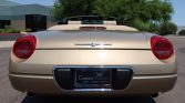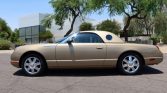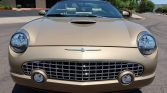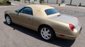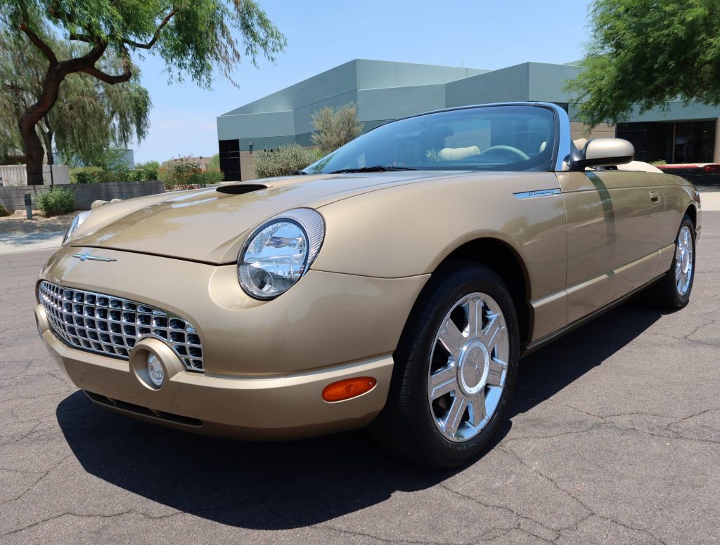 This 2005 Ford Thunderbird was purchased new by the owner of Weber-Harris Ford L-M Inc. in Meadville, Pennsylvania, and reportedly remained in their collection until the seller‘s acquisition in June 2021. The car is finished in Bronze Metallic over Light Sand leather and is powered by a 3.9-liter V8 paired with a five-speed automatic transmission. Features include a power-operated convertible top, a body-color removable hardtop, 17″ wheels, heated and power-adjustable seats, dual-zone automatic climate control, and an Audiophile Sound System.