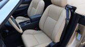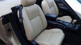 The cabin features heated and power-adjustable seats upholstered in Light Sand leather along with a black dashboard, door panels, and carpeting. Amenities include silver trim accents, dual-zone automatic climate control, cruise control, and an Audiophile Sound System linked to a six-disc CD changer.