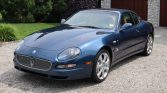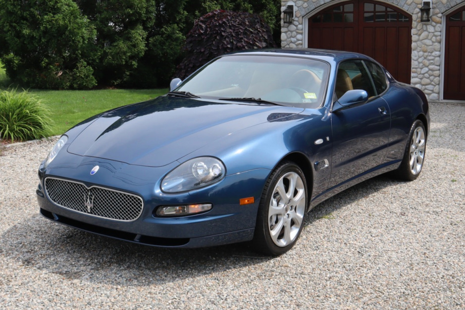 This 2005 Maserati Coupe was purchased new by the seller from Miller Motorcars of Greenwich, Connecticut and is finished in Sebring Blue over tan leather. Power comes from a 4.2-liter V8 paired with a paddle-shifted six-speed Cambiocorsa electrohydraulic transaxle. Optional equipment includes the Vintage Pack, Skyhook suspension, xenon headlights, heated front seats, a leather headliner, navigation, and a Hi-Fi audio system.