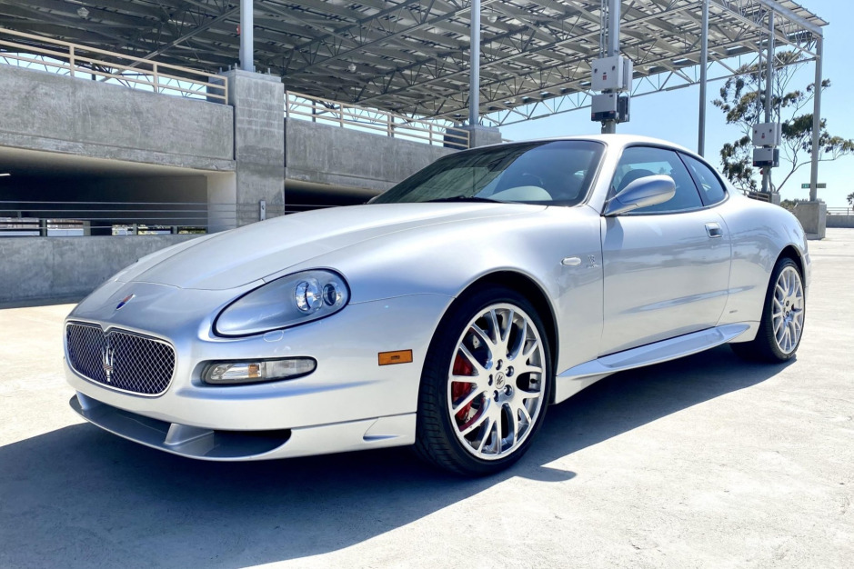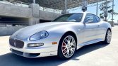 Based on the Giugiaro-designed Maserati Coupé, the GranSport features revised bumpers, side skirts, and a carbon fiber trunk lid spoiler. This example is finished in Grigio Touring and features Xenon headlights with washers,…