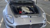 Based on the Giugiaro-designed Maserati Coupé, the GranSport features revised bumpers, side skirts, and a carbon fiber trunk lid spoiler. This example is finished in Grigio Touring and features Xenon headlights with washers, mesh grille inserts, and rear park distance control sensors.