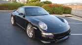 This 2005 Porsche 911 Carrera S coupe has 40k miles following registration history in California, and modifications include Fister Sports exhaust components, Bilstein coilovers, a Turbo-style rear wing, and an aerodynamic front bumper cover. The car is finished in black over matching leather, and it is powered by a 3.8-liter flat-six paired with a six-speed manual transaxle. Equipment includes the Sport Chrono Package Plus, 19″ Carrera Sport wheels, bi-xenon headlights, a sunroof, and Porsche Communication Management with navigation…