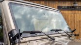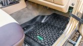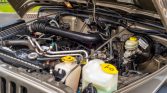 Hutchinson Rock Monster beedlock wheels are fitted with 35″ BFGoodrich Mud-Terrain T/A tires. A matching spare is mounted to a swing-out carrier at the rear. A Clayton Off Road 4″ Long Arm lift kit was installed by Clayton Off Road at their facility in Connecticut. Bilstein shock absorbers and a Rancho steering damper have also been fitted.