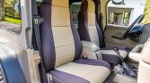 The cabin features seating upholstered in Khaki cloth, and the front seats wear two-tone covers. Amenities include air conditioning, a lockable center console, and a Kenwood stereo with Bluetooth.