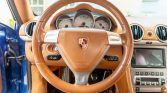 Multi-piece 19″ wheels wear colored Porsche-crest center caps and are fitted with Continental ExtremeContact tires. Stopping power is provided by cross-drilled rotors and red-finished calipers at all four corners. Replacement rotors, pads, and front tires were installed in preparation for the sale, along with Bilstein struts, and an alignment was performed in March 2021.