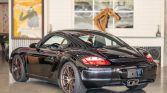This 2006 Porsche Cayman S is powered by a 3.4-liter flat-six paired with a six-speed manual transaxle, and it has been modified with KW coilovers, 19″ and 20″ OZ Racing Ultraleggera wheels, and Pagid brake pads. Finished in Black over matching leather upholstery, the car is further equipped with a deployable rear spoiler, bi-xenon headlights, and fog lights in addition to aluminum-look trim, automatic climate control, a CD stereo, and cruise control.