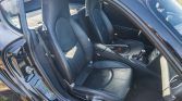 The seats are upholstered in black leather with contrasting stitching and are accompanied by matching door panels. Additional appointments include aluminum-look trim, a Porsche CDR-24 CD stereo, automatic climate control, a passenger-side airbag-off switch, and cruise control along with an Alcantara headliner with red stitching.