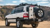 This 2006 Toyota Land Cruiser is finished in white over beige and is powered by a 4.7-liter V8 paired with a five-speed automatic transmission, a dual-range transfer case, and a locking center differential. Equipment includes a sunroof, an aftermarket roof rack, an ARB front bumper with a Warn winch, a Slee rear bumper and tire carrier, Slee rock sliders, a dual battery system, aftermarket LED fog and roof lights, ARB front and rear air lockers, heated front…