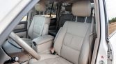 The cabin features seats upholstered in beige leather along with a matching dashboard, carpets, and door panels as well as contrasting dark beige trim. Equipment includes a sunroof, heated front seats, cruise control, navigation, automatic climate control, an aftermarket Pioneer CD stereo, and fold-away third row seats.