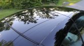 The car is finished in Solid Black and is equipped with a body-color retractable hardtop. Additional exterior features include HID headlamps with washers, side mirrors with integrated turn signals, rear parking sensors, and dual exhaust outlets with polished finishers. No aLidents are listed on the Carfax report.