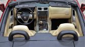 The body is finished in Infrared and features a power-retractable hardtop, adaptive HID headlights with washers, fog lights, quad exhaust outlets, rear park assist, and V-Series and supercharged badging along with chrome mesh grilles.
