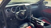This 2007 Ford Mustang Shelby GT500 convertible has 686 miles and is powered by a supercharged 5.4-liter V8 paired with a six-speed manual transmission. The car is finished in black over Charcoal Black and Crimson Red leather upholstery and was acquired by the current owner in 2024. Equipment includes a limited-slip differential, 18″ forged alloy wheels, a black soft top, a Shaker 1000 sound system, a CD stereo, cruise control, and air conditioning.