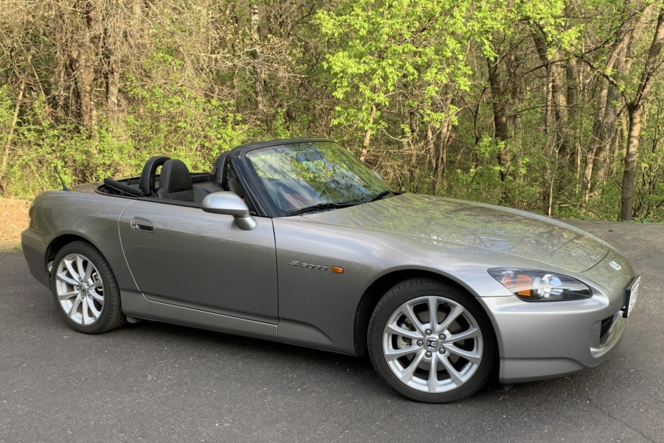 This 2007 Honda S2000 was purchased new by the seller at Brookdale Honda of Brooklyn Center, Minnesota, and it now has 27k miles. The car is finished in Silverstone Metallic over red and black leather and is powered by a 2.2-liter VTEC inline-four paired with a six-speed manual transmission and a limited-slip differential. Features include a power-retractable black soft top with a glass rear window, xenon headlights, a factory CD stereo, air conditioning, and cruise control. A…