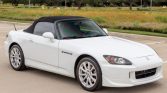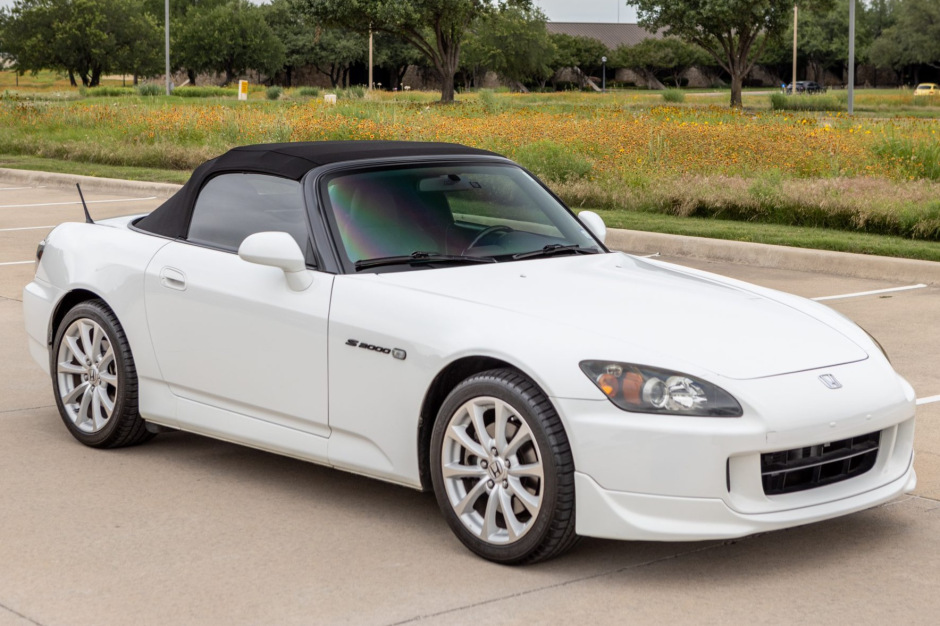 This 2007 Honda S2000 is finished in Grand Prix White with a black soft top over black and red leather and is powered by a 2.2-liter inline-four paired with a six-speed manual transmission. Equipment includes a power-operated soft top, xenon headlights, air conditioning, cruise control, power aLessories, and an aftermarket Pioneer CD stereo.