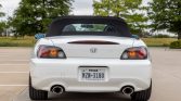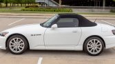 The car is finished in Grand Prix White and equipped with a black power-operated soft top with a glass rear window, xenon headlights, dual exhaust outlets with polished tips, and body-colored mirrors. The car has an AP2 front lip, and the seller states that a Robbins Auto Top replacement soft top has been installed.