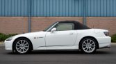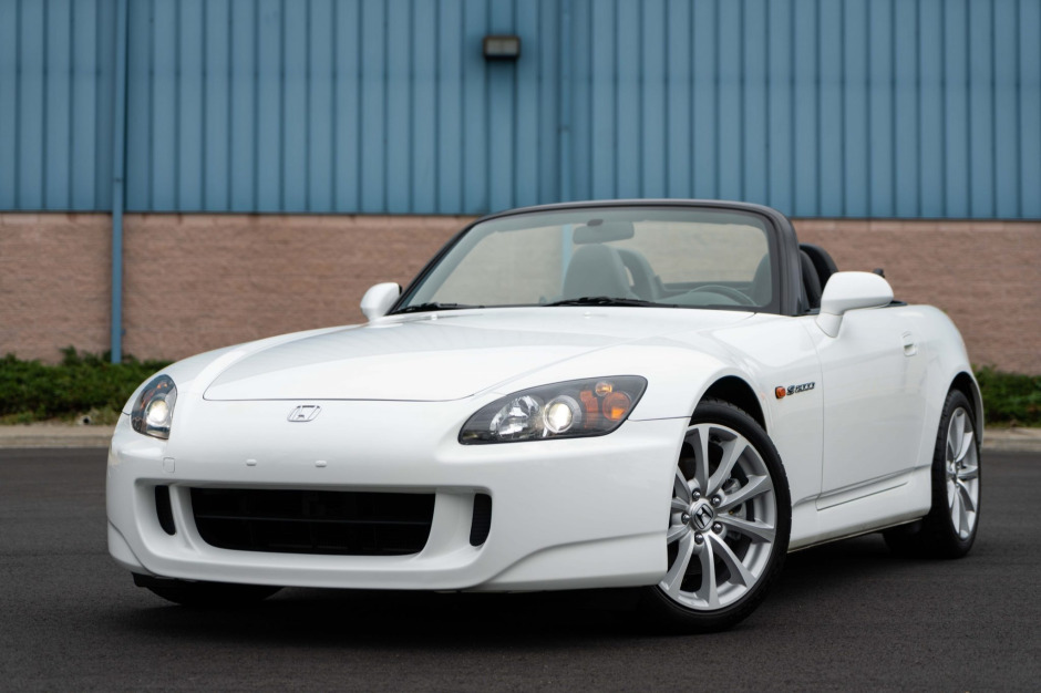 This 2007 Honda S2000 is finished in Grand Prix White over red and black leather, and power comes from a 2.2-liter F22C VTEC inline-four paired with a six-speed manual transmission and a limited-slip differential. Equipment includes a black soft top, air conditioning, xenon headlights, 17″ alloy wheels, and power aLessories.