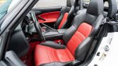 The cabin features red and black leather upholstery with color-matching carpeting and trim. Amenities include aluminum pedals, air conditioning, a factory CD stereo, cruise control, and power windows and door locks.
