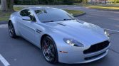 This 2008 Aston Martin V8 Vantage coupe has 56k miles, and is finished iin AM Titanium Silver over Obsidian Black leather, the car is powered by a 4.3-liter V8 paired with a Sportshift six-speed automated transaxle. Equipment includes 19″ seven-spoke alloy wheels, a limited-slip differential, xenon headlights, heated power-adjustable seats, navigation, and automatic climate control.