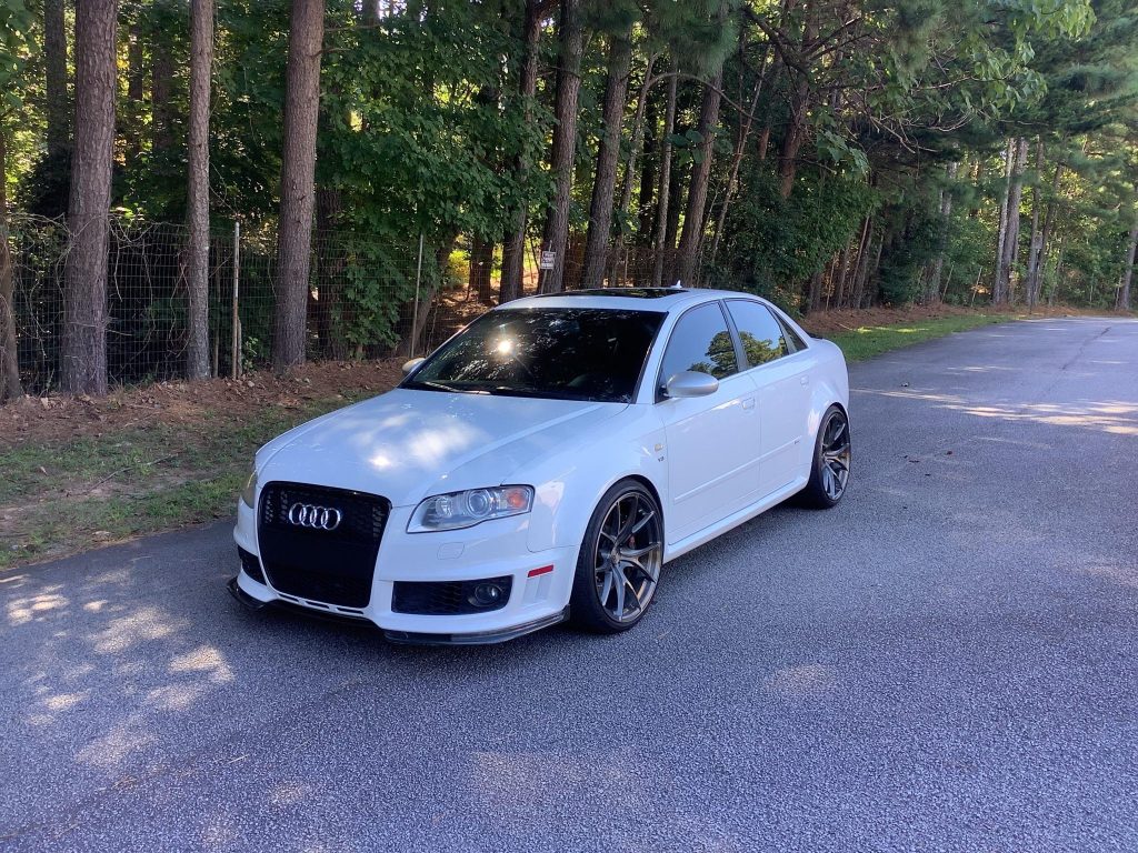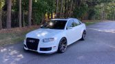 This 2008 Audi RS4 is finished in Ibis White over silver leather and powered by an APR supercharged 4.2-liter V8 paired with a six-speed manual transmission and a Quattro all-wheel-drive system. Additional equipment includes 20″ VS Forged wheels, an APR intercooler, an aftermarket ECU tune, KW coilovers, 034Motorsports control arms, an AWE Tuning exhaust system, heated power-adjustable seats, a flat-bottom steering wheel, and a JVC stereo. The car was first registered in Minnesota and was acquired by…