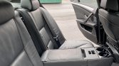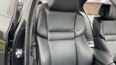 The cabin is upholstered in black Merino leather, while brushed aluminum trim accents the dashboard, door panels, and center console. Amenities include power-adjustable heated front seats with position memory, navigation, a head-up display, automatic climate control, and cruise control.