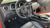 The cabin features front bucket seats upholstered in black leather with embossed Cobra logos. Amenities include air conditioning, cruise control, a Shaker 500 CD stereo with trunk-mounted subwoofers, and power windows and door locks. A switch to operate engine cooling fans is located under the center armrest.