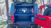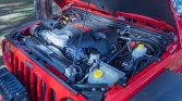 The 5.7-liter Hemi Dodge RAM V8 features variable valve timing and was reportedly installed by Jeep Speed Shop of Cotati, California. Power is sent to the rear or all four wheels through a Chrysler 545RFE five-speed automatic transmission, a two-speed transfer case, and electronically locking front and rear differentials with 5.13:1 gearing. An oil service was performed in January 2021.