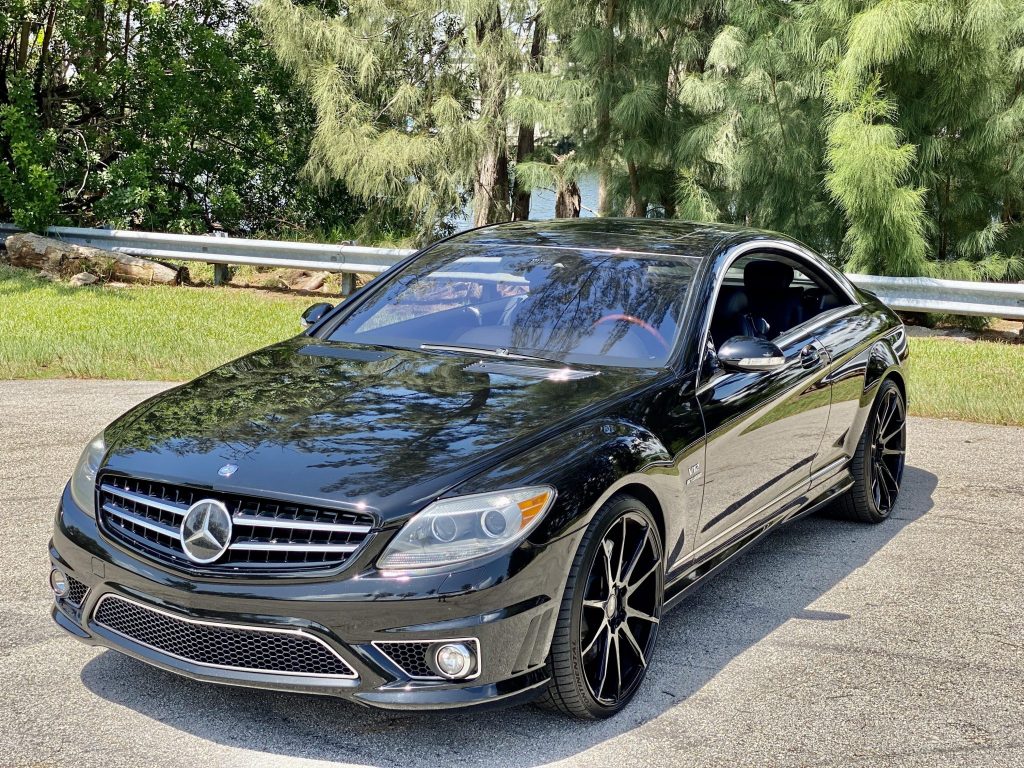 The CL65 can be visually distinguished from the standard CL by its deeper front and rear valances, rocker extensions, quad-outlet exhaust system, and model-specific badging. This example is finished in black (040U), and additional equipment includes bi-xenon headlights with active corner functioning, fog lights, and a sunroof.