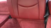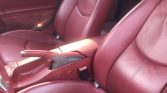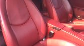 The interior is optioned with Carrera Red Natural leather covering the seats, dashboard, door panels, shift knob, emergency brake lever, and steering wheel. Equipment includes power-adjustable and heated front seats, along with cruise control, automatic climate control, auto-dimming mirrors, an Alcantara headliner, and a Bose sound system with a CD player.