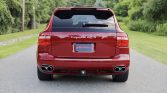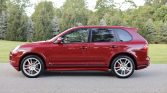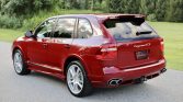 Compared to the standard Cayenne S, the GTS utilizes Turbo-like front and rear fascias, black B and C-pillars, wheel arch extensions, and a painted fixed-roof spoiler. This example is finished in GTS Red and features fog lights, bi-xenon headlamps with washers, a power sunroof, quad exhaust outlets, a receiver hitch, and front and rear parking sensors.