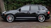 This 2008 Porsche Cayenne GTS is a black-over-black example that is powered by a 4.8-liter V8 mated to a six-speed manual transmission and an all-wheel-drive system. Additional equipment includes adjustable air suspension, a trailer hitch receiver, a roof spoiler, a glass sunroof, roof rails, heated front seats with position memory, bi-xenon headlights, and 21″ alloy wheels, while modifications include a Pioneer stereo with reverse camera, a Prodigy P2 trailer-brake controller, and Weathertech floor liners.