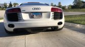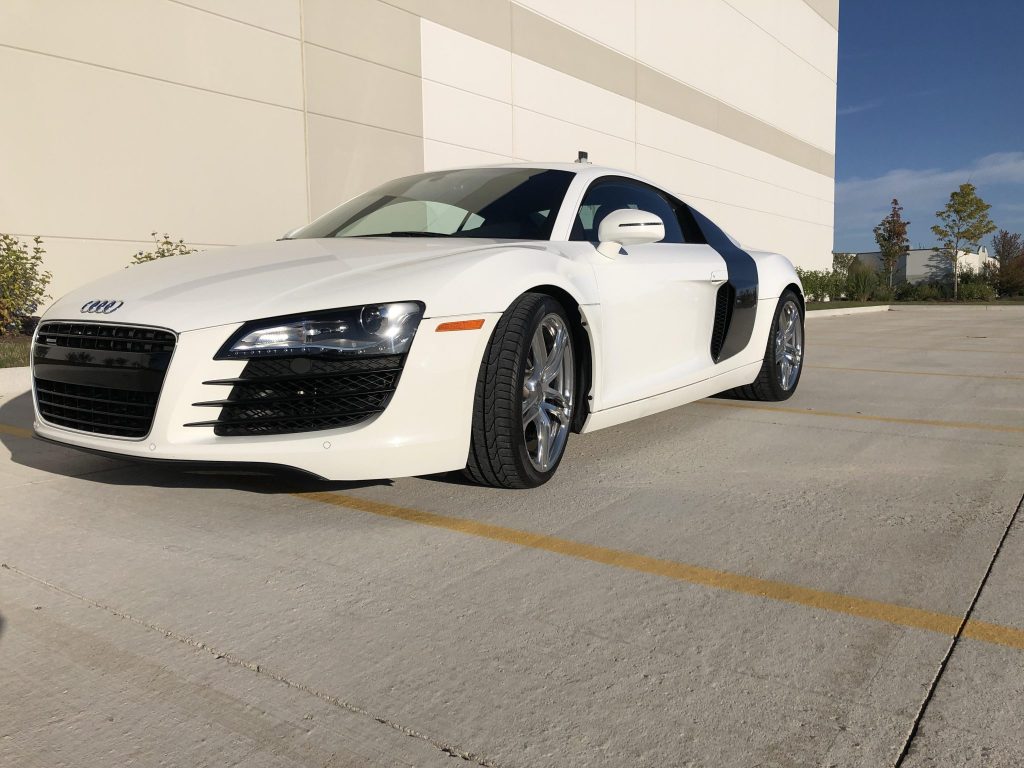 This 2009 Audi R8 coupe is finished in Ibis White over Black Nappa leather and powered by a 4.2-liter V8 paired with a six-speed manual transaxle and a Quattro all-wheel drive system. Equipment includes 19″ wheels, black side blades, the Premium package, heated and power-adjustable seats, a Bang & Olufsen sound system, Navigation Plus, and parking sensors. The car was delivered new to Suncoast Motorsports Audi of Sarasota, Florida and later relocated to Illinois where it was…