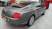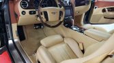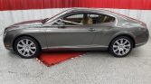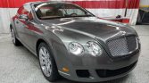 This 2009 Bentley Continental GT is powered by a twin-turbocharged 6.0-liter W12 paired with a six-speed automatic transaxle and all-wheel drive. Finished in dark silver over tan and brown leather upholstery, it features an automatic rear spoiler, xenon headlights, 19″ chrome-finish wheels, adjustable air suspension, heated and power-adjustable front seats, dual-zone automatic climate control, and a navigation system.