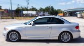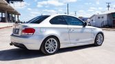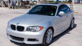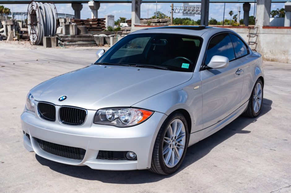 This 2011 BMW 128i coupe is finished in Titanium Silver Metallic over black leather and is powered by a 3.0-liter inline-six paired with a six-speed manual transmission. Equipment includes 17″ Style 207 wheels, a glass sunroof, the M Sport package, fog lights, power-adjustable seats, dual-zone automatic climate control, and Hi-Fi audio.