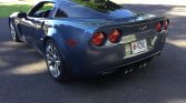 The Z06 features a hydroformed aluminum chassis with composite and carbon-fiber bodywork. This example is finished in Supersonic Blue (GLB) and equipped with xenon headlights, integrated driving lights, fender and quarter panel vents, a ZR1-style rear spoiler, and quad exhaust outlets.