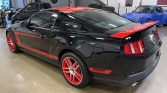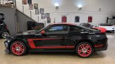 Two color schemes were offered for the 2012 Laguna Seca edition, and this example is finished in black with red accents including a red front grille, rear spoiler, roof panel, and side C-stripes. Additional features include a Laguna Seca-specific rear badge with a track outline, a front splitter, and an exhaust system with two side and two rear outlets.