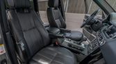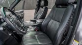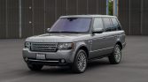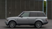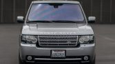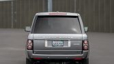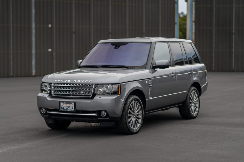 This 2012 Land Rover Range Rover is finished in Orkney Gray Metallic over Jet black leather and powered by a supercharged 5.0-liter V8 paired with a six-speed automatic transmission and a dual-range transfer case. Equipment includes electronic air suspension, all-terrain stability control, xenon headlights, a sunroof, rear privacy glass, power-adjustable heated and ventilated front seats, rear seat entertainment, and tri-zone automatic climate control.