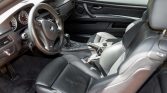 The cabin features power-adjustable seats upholstered in black Novillo leather, while carbon-look leather accents the matching dashboard. A Rogue Engineering short shift kit is reportedly fitted, and additional features include dual-zone automatic climate control, Comfort Access, cruise control, M3-branded floor mats, navigation, and a hi-fi stereo system.