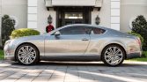 This 2014 Bentley Continental GT Speed is finished in Hallmark over Saddle leather and is powered by a twin-turbocharged 6.0-liter W12 paired with an eight-speed automatic transmission, an all-wheel drive system, and a limited-slip rear differential. Equipment includes xenon headlights with washers, chrome trim, front and rear parking sensors, 21″ alloy wheels, a backup camera, a speed-activated rear spoiler, LED taillights, air suspension, automatic climate control, a touchscreen CD stereo, a navigation system, cruise control, and heated and ventilated power-adjustable front seats.