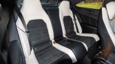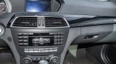 The heated power-adjustable front sport seats have position memory settings and are trimmed in Porcelain leather with black microsuede inserts, while rubberized floor mats line the footwells. Interior appointments include Keyless-Go, a Harman Kardon sound system, COMAND infotainment, navigation, a rearview camera, illuminated AMG door sill plates, and dual-zone automatic climate control.