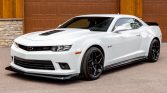 This 2015 Chevrolet Camaro Z28 coupe is finished in Summit White over a black leather and microfiber interior and is powered by a 7.0-liter V8 paired with a six-speed manual transmission and a limited-slip differential. Additional equipment includes the Air Conditioning and Audio Package, a dealer-installed rear spoiler extension, a harness bar, Recaro performance seats, spool-valve dampers, Brembo carbon-ceramic brakes, and forged-aluminum 19″ wheels. The car was first registered in California and was relocated to Colorado upon…