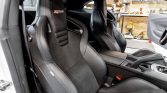The interior features Recaro performance seats upholstered in black leather with Z28-embroidered headrests and sueded microfiber inserts that extend to the dashboard, steering wheel, shift knob, and shift boot. The car is equipped with the Air Conditioning and Audio Package, and a six-point harness bar has been added.