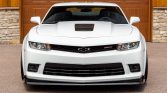 The car is finished in Summit White and features Z28-specific enhancements including a unique front fascia with a fixed splitter, an aluminum hood with a carbon-fiber insert, a flat front undertray, wheel arch extensions, and a rear spoiler with a dealer-installed extension.