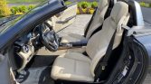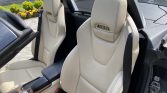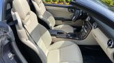 The cabin features seating upholstered in beige MB-Tex with a two-tone dash and black carpets, and burred walnut wood veneers aLent the center console and door panels. Amenities include power-adjustable and heated seats with position memory and Airscarf as well as ambient lighting, cruise control, air conditioning, silver roll hoops, a wind deflector, and a Harman Kardon sound system.
