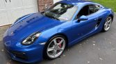 This 2015 Porsche Cayman GTS is powered by a 3.4-liter flat-six paired with a six-speed manual transaxle. Having 39k miles, it is finished in Sapphire Blue Metallic over black leather upholstery and is further equipped with the Sport Chrono Package, 20″ SportTechno alloy wheels, Porsche Torque Vectoring, bi-xenon headlights, a speed-activated rear spoiler, heated power-adjustable seats, the Convenience Package, dual-zone automatic climate control, and cruise control.