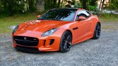 This 2016 Jaguar F-Type S AWD coupe is finished in Firesand Metallic over black leather and is powered by a supercharged 3.0-liter V6 paired with an eight-speed automatic transmission and all-wheel drive. Equipment includes the Black Exterior Pack, the Interior Black Pack, and the Premium, Vision, and Extended Leather packages, along with a panoramic roof, 20″ alloy wheels, a speed-activated rear spoiler, heated and power-adjustable performance seats, a heated steering wheel, automatic climate control, push-button ignition, cruise control, navigation, and a Meridian sound system.