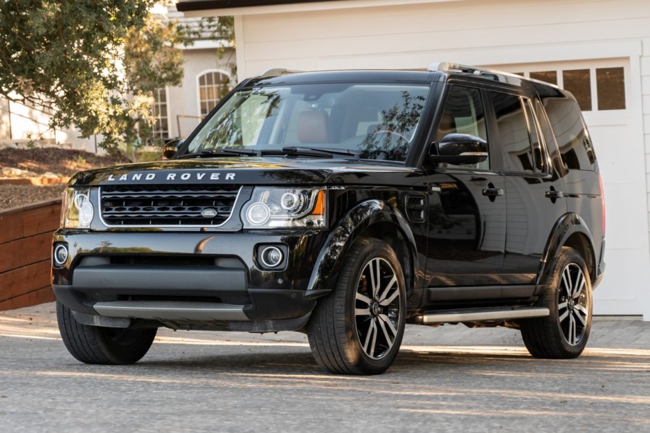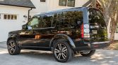 This 2016 Land Rover LR4 Landmark Edition is finished in Santorini Black Metallic over Tan leather and is powered by a supercharged 3.0-liter V6 linked to an eight-speed automatic transmission. Features include 20″ Style 510 alloy wheels, an electronic air suspension, xenon headlights, fog lights, roof rails, running boards, parking sensors, heated power-adjustable front seats, third-row seating, a Meridian sound system, a surround-view camera, navigation, cruise control, and dual-zone automatic climate control.