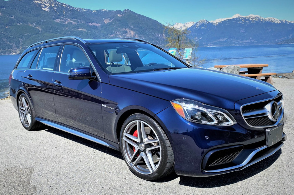 This 2016 Mercedes-AMG E63 S wagon was purchased new by the current owner in Vancouver, British Columbia and now shows 31k miles. The car is finished in Cavansite Blue Metallic over gray leather and is powered by a twin-turbocharged 5.5-liter V8 paired with a seven-speed automatic transmission and 4MATIC all-wheel drive. Equipment includes a locking rear differential, Active Park Assist, the Driving Package, dynamic LED headlights, 19″ wheels, red-finished brake calipers, and heated and cooled dynamic front seats with massage function. A service was performed in preparation for the sale in April 2021, the details of which are provided below.
