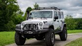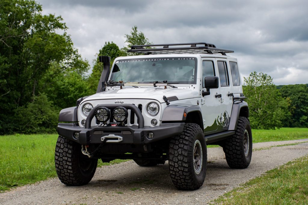 This 2017 Jeep Wrangler Unlimited Rubicon is #5 of 20 20th Anniversary JK350s modified by American Expedition Vehicles and was acquired by the seller in 2020. The truck was originally delivered to Cross Motors Corporation of Louisville, Kentucky, and is finished in Bright White over black upholstery. Power is sent to the rear or all four wheels via a 5.7-liter Hemi V8, a five-speed automatic transmission, and a Rock-Trac transfer case, while additional modifications include Tru-Lok front and rear differentials, a 4.5″ suspension lift, Dana 44 axles, a heat reduction hood, a Warn winch, IPF lighting, stamped steel bumpers, and 17″ Borah wheels with 37″ tires.