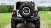 The truck is finished in Bright White with a matching three-piece hardtop and features AEV 20th Anniversary badging, a Warn Zeon winch, IPF LED driving lights, AEV steel bumpers, AEV rear corner guards, AMP Research retractable side steps, and external water and fuel storage tanks. Additional features include an AEV roof rack, snorkel, and a heat reduction hood. A hi-lift jack is mounted on the front cowl.